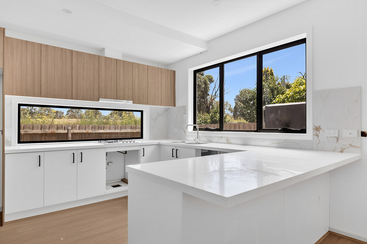# 40mm benchtop in the kitchen and decorative tiled splash back