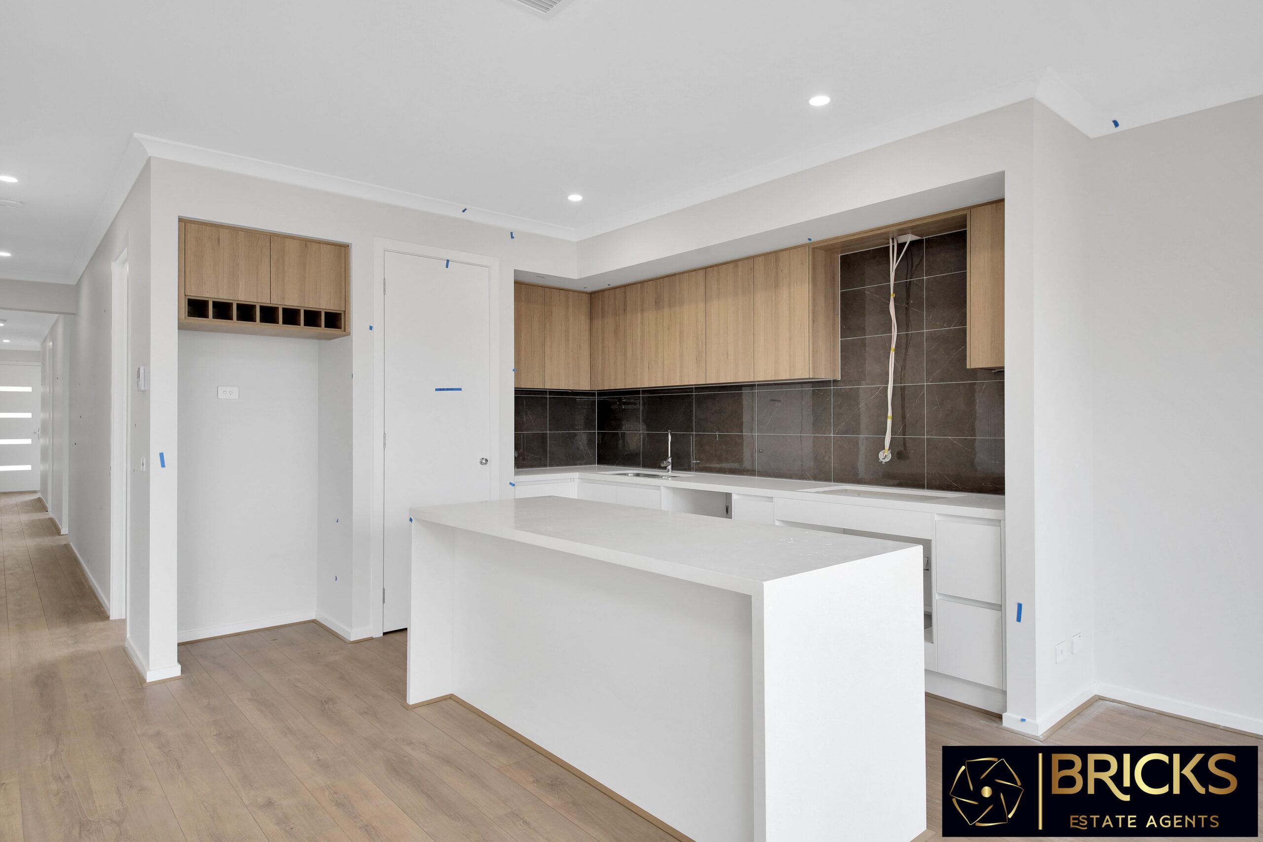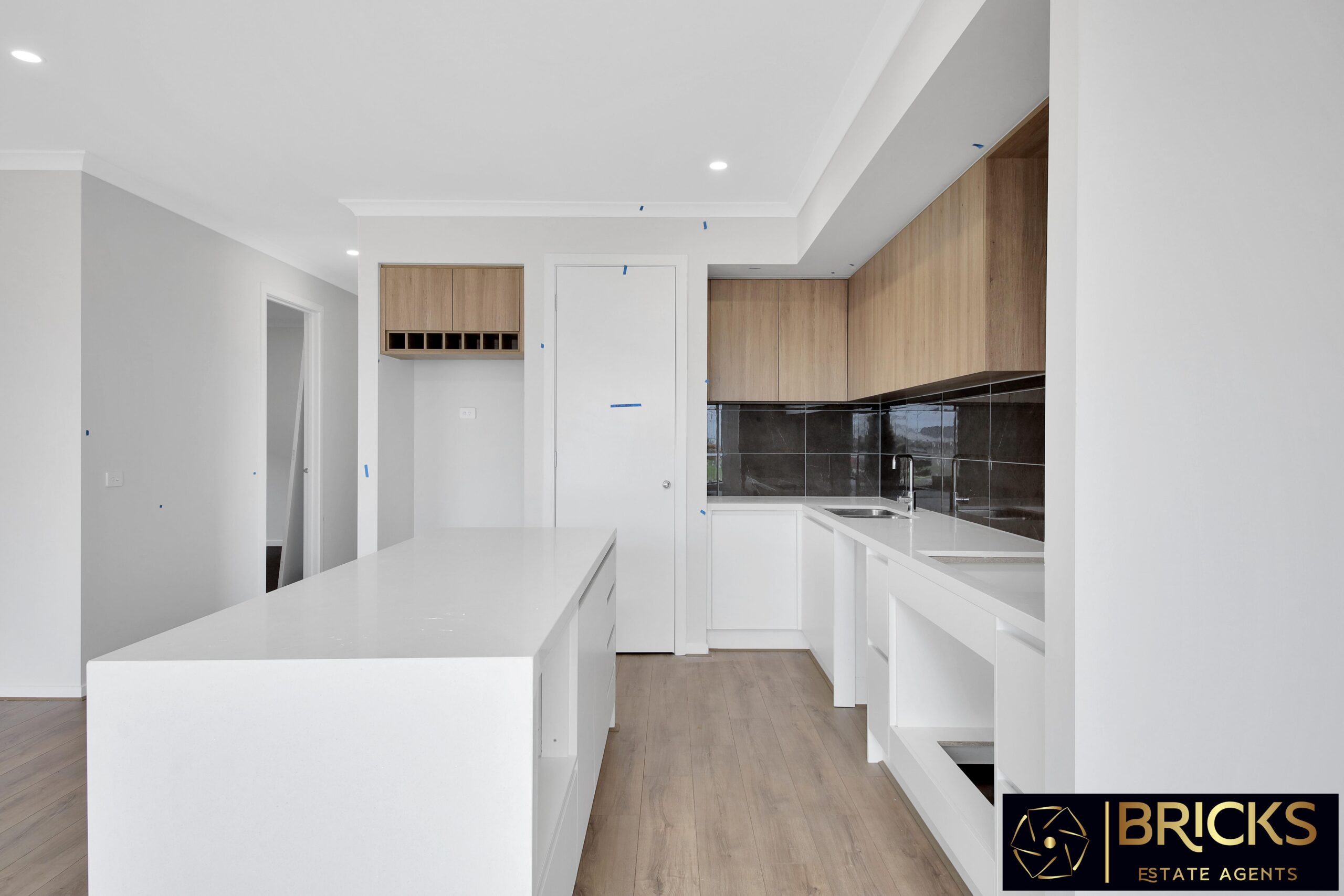 • 40mm Stone bench tops in the Kitchen through to Island bench with waterfall on both sides