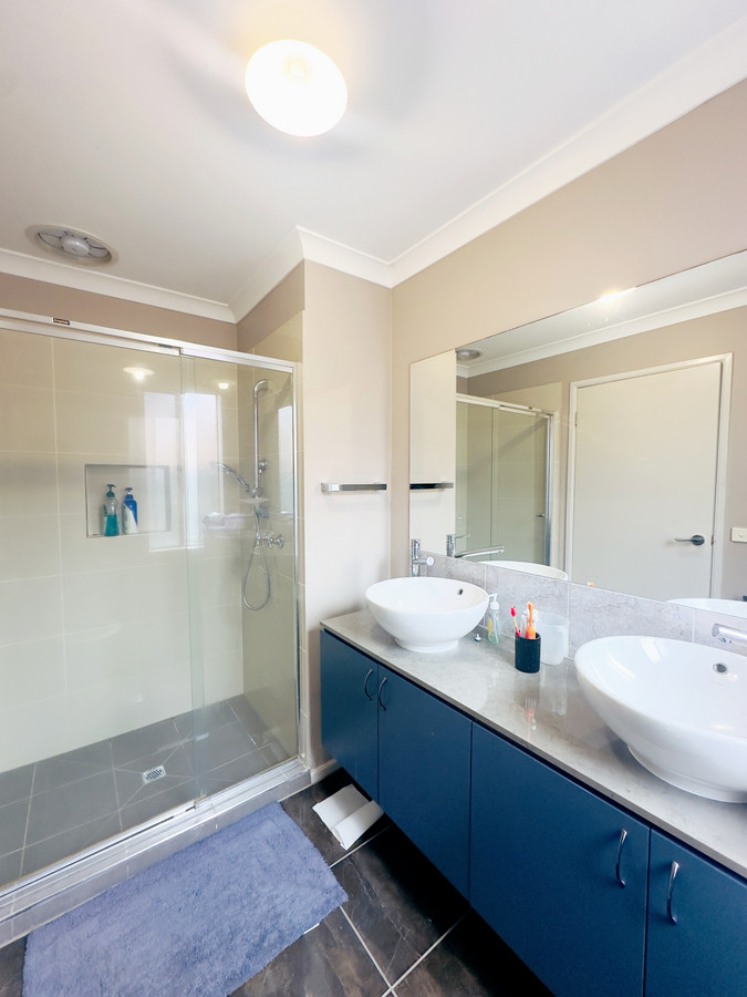 *Master bedroom with Ensuite Double Vanity and Walk in robe with Laminate timber flooring.
